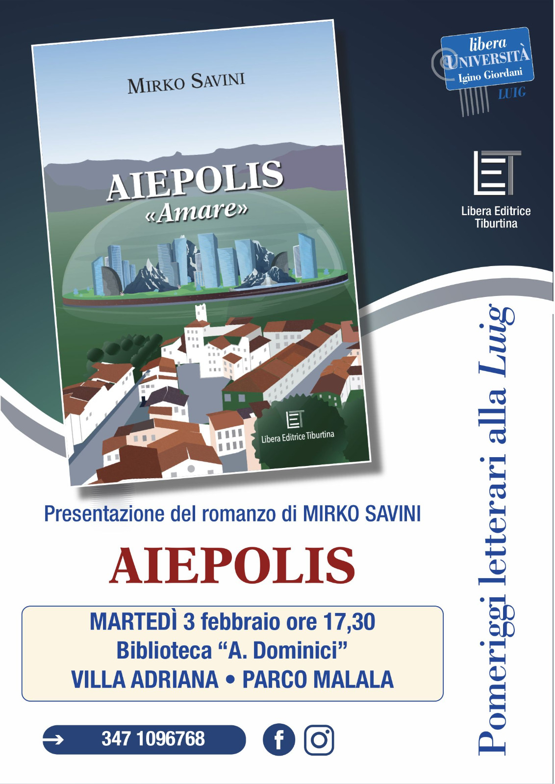 Il primo appuntamento si terrà martedì 3 febbraio alle ore 17.30, presso la Biblioteca Angela Dominici, al Parco Malala. Ospite dell’incontro sarà Mirko Savino, che presenterà il suo romanzo Aiepolis «Amare», un’opera capace di raccontare un’utopia concreta e di stimolare una profonda riflessione sul significato dell’amore e della comunità.